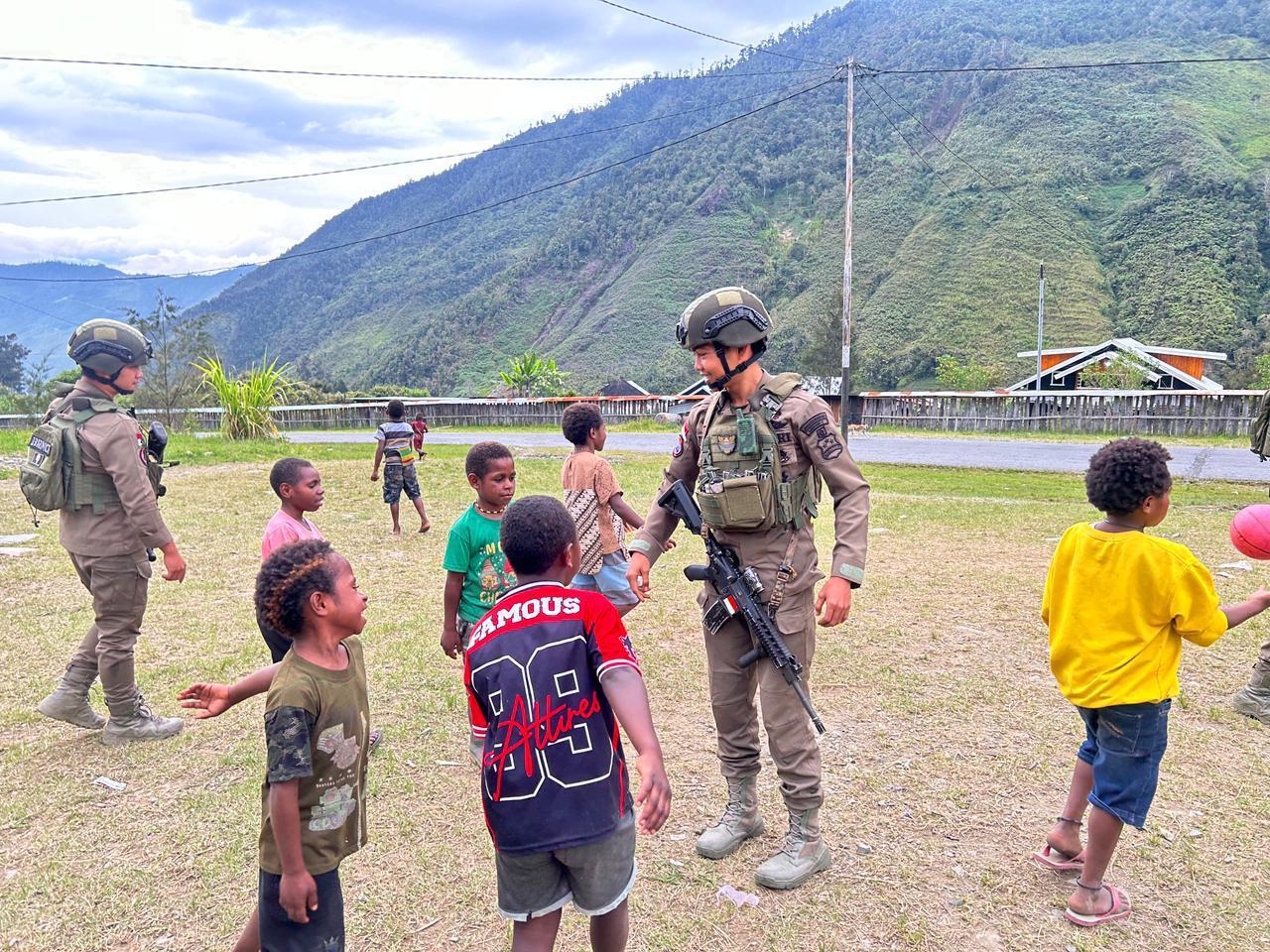 Satgas Humas Ops Damai Cartenz Berbagi Keceriaan Dengan Anak-Anak Nolokla Sentani